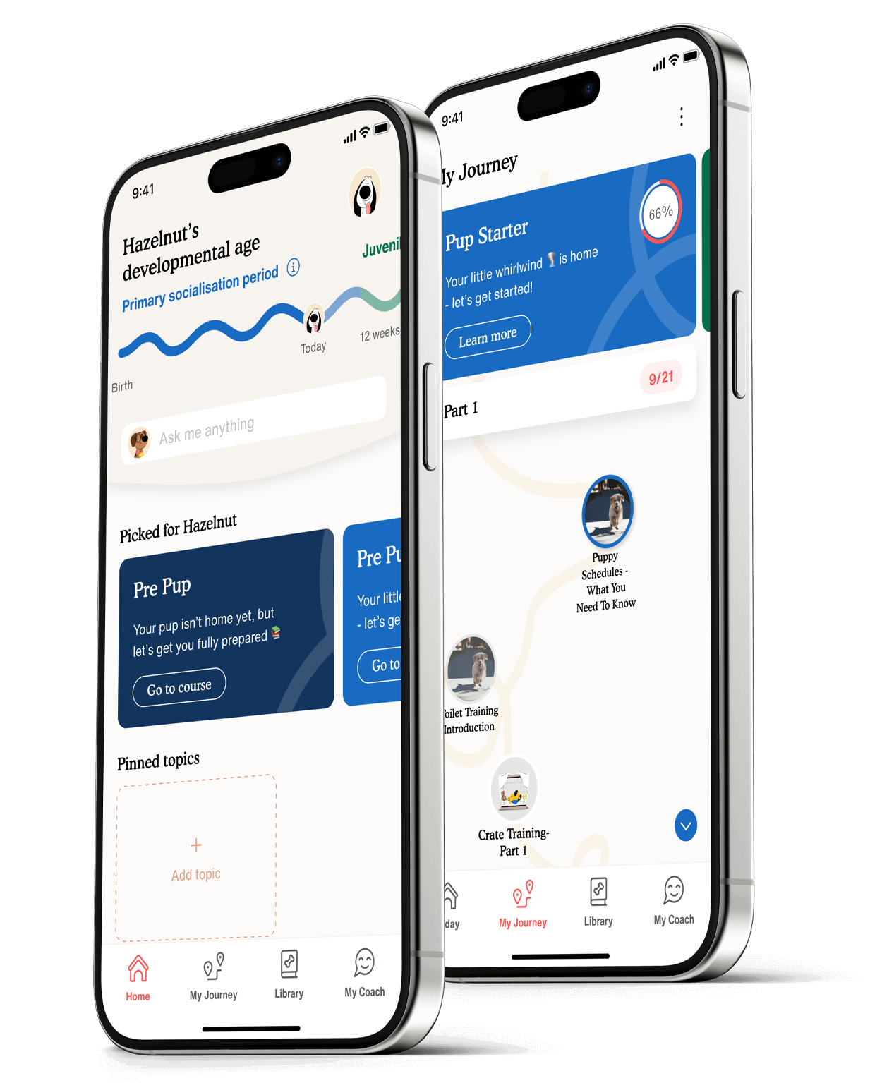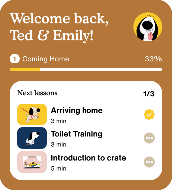 The #1 app 100% dedicated to puppyhood training. Simple bitesize lessons, tailored to your pup’s breed & age.